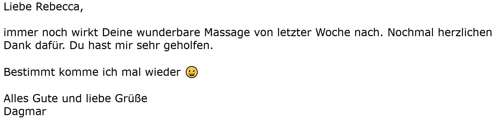 Ich habe mich am Wochenende nach unserer Sitzung total erleichtert und frei gefühlt, konnte tiefer und leichter