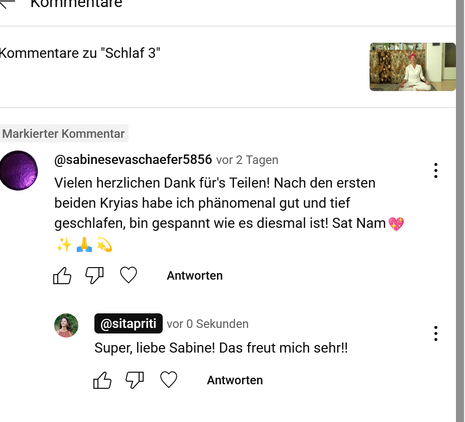 Vielen Dank liebe Sita Priti, das war gestern wieder sehr schön und intensiv. Danke für deine einfühlsame Anleitung der Kriya. Ich freue mich auf nächsten Dienstag.